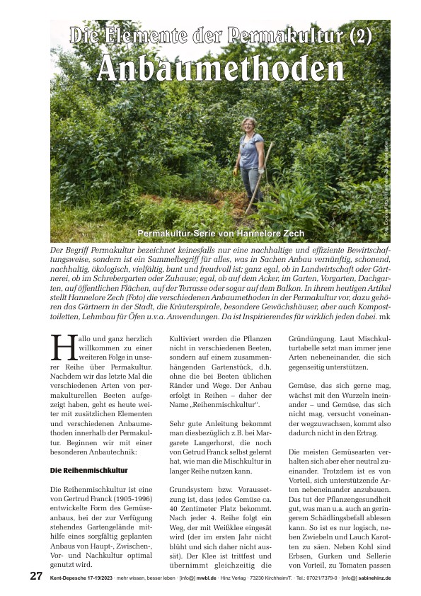 »Der Begriff Permakultur bezeichnet nicht nur eine nachhaltige und effiziente Bewirtschaftungsweise, sondern ist ein Sammelbegriff für alles, was in Sachen Anbau vernünftig, schonend, nachhaltig, ökologisch, vielfältig, bunt und freudvoll ist; egal, ob in Landwirtschaft oder Gärtnerei, ob im Schrebergarten oder Zuhause; egal, ob auf dem Acker, im Garten, Vorgarten, Dachgarten, auf öffentlichen Flächen, auf der Terrasse oder sogar auf dem Balkon. In ihrem heutigen Artikel stellt Hannelore Zech die verschiedenen Anbaumethoden in der Permakultur vor, dazu gehören das Gärtnern in der Stadt, die Kräuterspirale, besondere Gewächshäuser, aber auch Komposttoiletten, Lehmbau für Öfen u.v.a. Anwendungen. Da ist Inspirierendes für wirklich jeden dabei.«