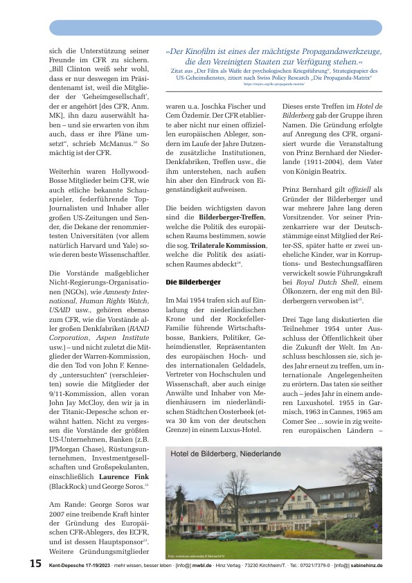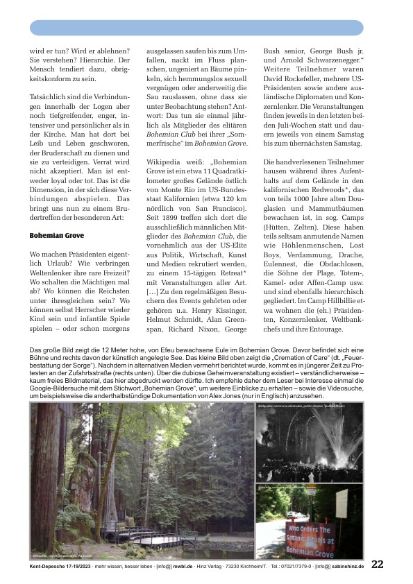 • Kissinger und die „Sommerfrische“ im Bohemian Grove u.v.m.