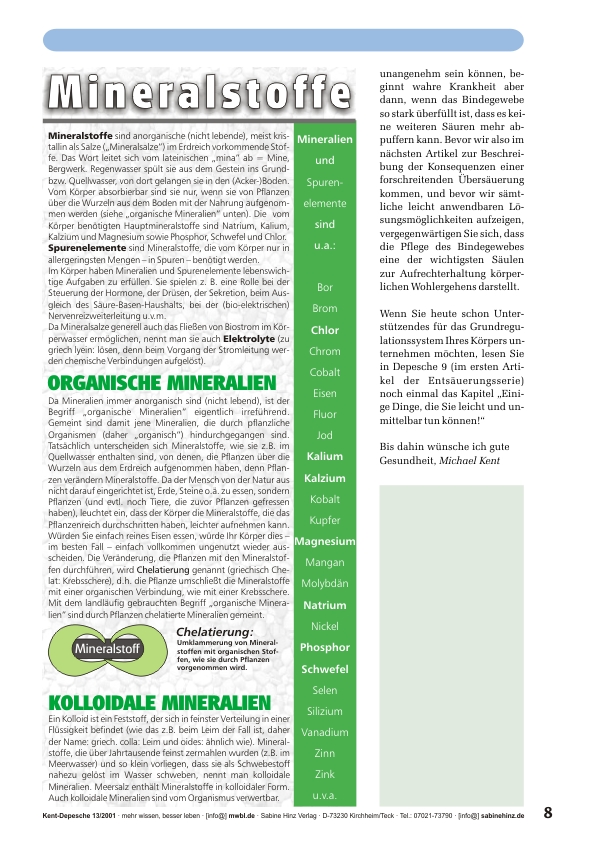 • Leicht verständlich: Was sind Mineralstoffe, Spurenelemente, „organische Mineralien“, kolloidale Mineralien, Ionen, Elektrolyte, chelatierte Mineralien