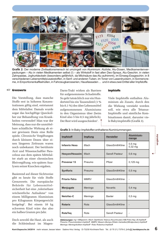 • Mehr Aluminium im Impfstoff als Baby aus Umwelt/Nahrung aufnimmt
