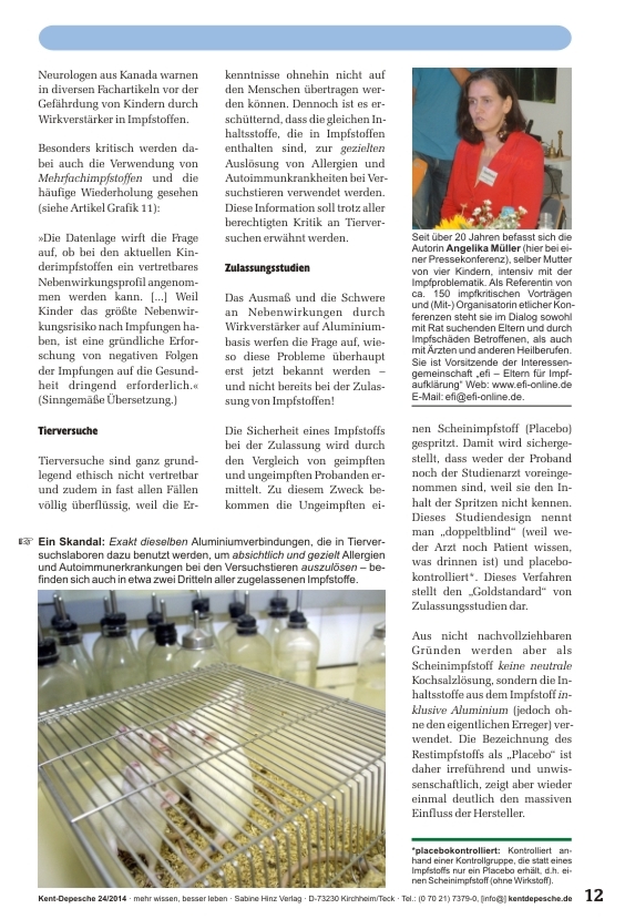 Ist Aluminium schädlich? Wie viel Aluminium verträgt der Mensch? Warum ist Aluminium in den Impfstoffen enthalten? Seitdem das Thema Aluminium sogar im Fernsehen kritisch hinterfragt wurde, beschäftigen sich immer mehr eigenverantwortliche Menschen damit. Mittlerweile warnen sogar deutsche und österreichische Behörden vor der Verwendung von Deos mit Aluminium, da die regelmäßige Benutzung möglicherweise gesundheitsschädlich sei. Die bekannte Impfkritikerin Angelika Müller ist der Meinung, dass Aluminium im Deo zwar problematisch ist, im Impfstoff jedoch eine Katastrophe darstellt – und mit einer der Hauptfaktoren bei der Zunahme vieler chronischer Krankheiten ist. Die neuesten weltweiten Forschungsergebnisse und Erkenntnisse daraus untermauern diese Aussage mit Fakten.