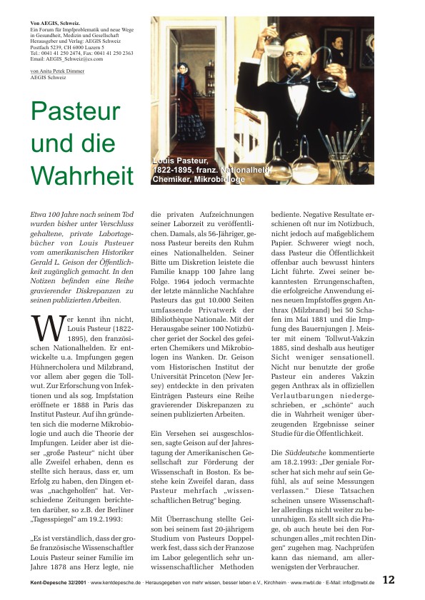 Der berühmte Mikrobiologe fälschte seine Forschungsaufzeichnungen. »Etwa 100 Jahre nach seinem Tod wurden bisher unter Verschluss gehaltene, private Labortagebücher von Louis Pasteuer vom amerikanischen Historiker Gerald L. Geison der Öffentlichkeit zugänglich gemacht. In den Notizen befinden eine Reihe gravierender Diskrepanzen zu seinen publizierten Arbeiten.«