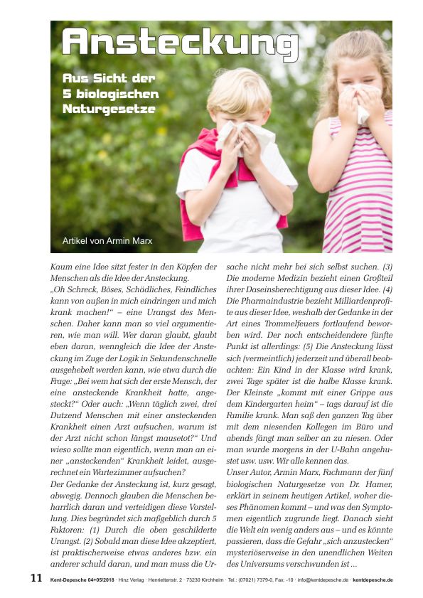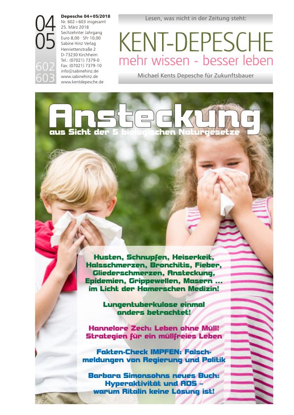 Ansteckung, Epidemien, Seuchen, Grippewellen usw., Husten, Schnupfen, Heiserkeit, Halsschmerzen, Bronchitis, Fieber, Gliederschmerzen, Masern, Tuberkulose u.a. ... im Licht der 5 biol. Naturgesetze von Dr. med. R.G. Hamer!