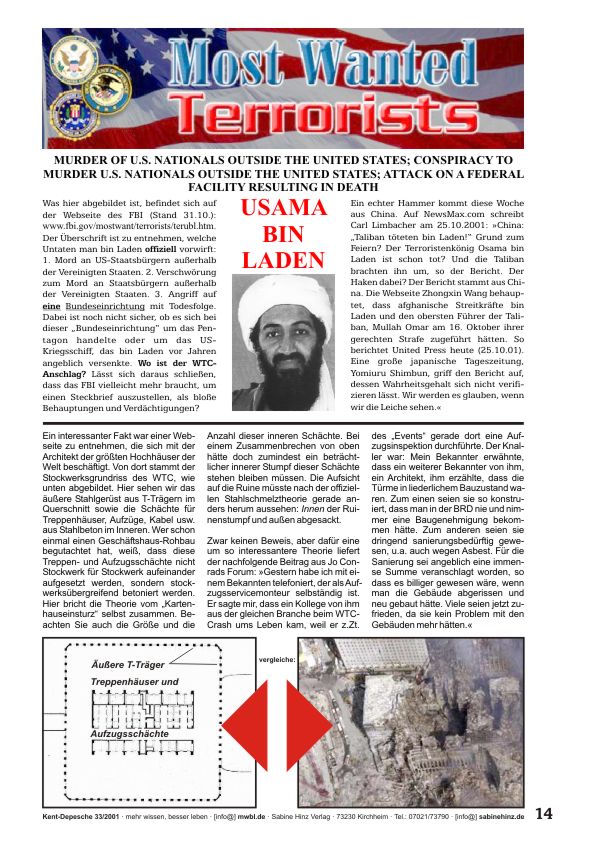 Warum wird Bin Laden vom FBI nicht wegen der 9/11-Anschläge gesucht?