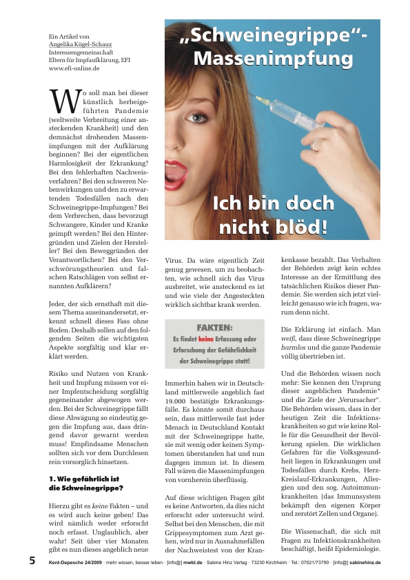 „Schweinegrippe“- Massenimpfung - Ich bin doch nicht blöd!