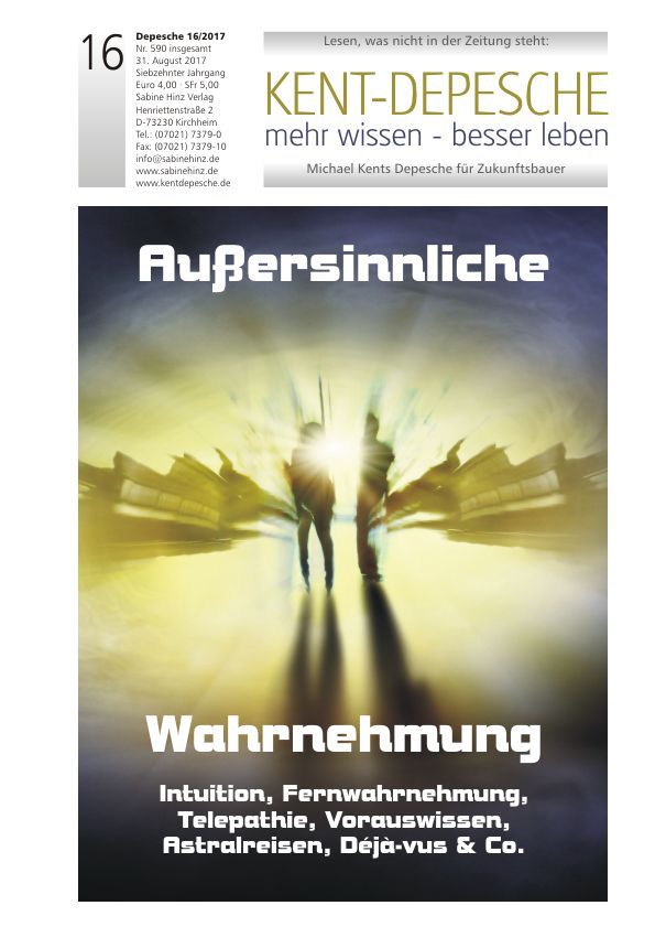 Außersinnliche Wahrnehmungen werden gerne abgetan, ignoriert, wissenschaftlich abgelehnt, ins Reich der Fabeln verbannt, als Spinnerei oder als „abstruser esoterischer Quatsch“ diffamiert. Auch viele Menschen, die sie für real halten, glauben, dass nur „außergwöhnliche Menschen“, hellsichtige, spirituell fortgeschrittene oder gesegnete, bewusste Menschen über solche Wahrnehmungen verfügen. Dies ist jedoch ein fataler Trugschluss, wie dieser Artikel aufzeigen wird. Denn Wahrnehmungen außerhalb der sog. „fünf Sinne“ (die übrigens eher ca. 20 körperliche Sinne sind) tätigt jeder, ob „spirituell“ begabt oder nicht. Michael Kent zeigt auf, über welche Sinne und Wahrnehmungsmöglichkeiten wir tatsächlich verfügen und lässt 14 Menschen aus dem