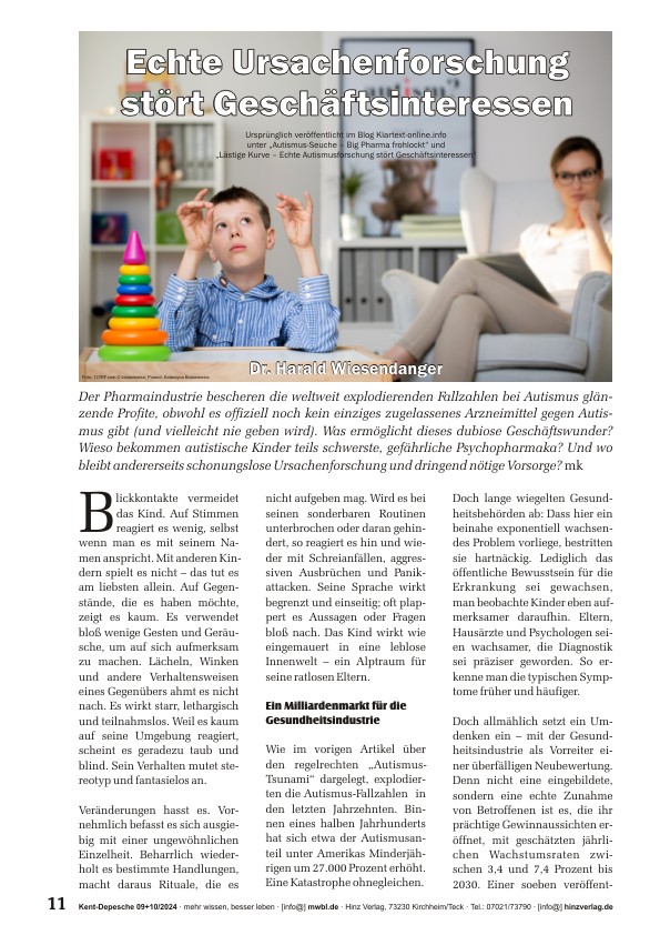 • Autismus: Echte Ursachenforschung stört Geschäftsinteressen!