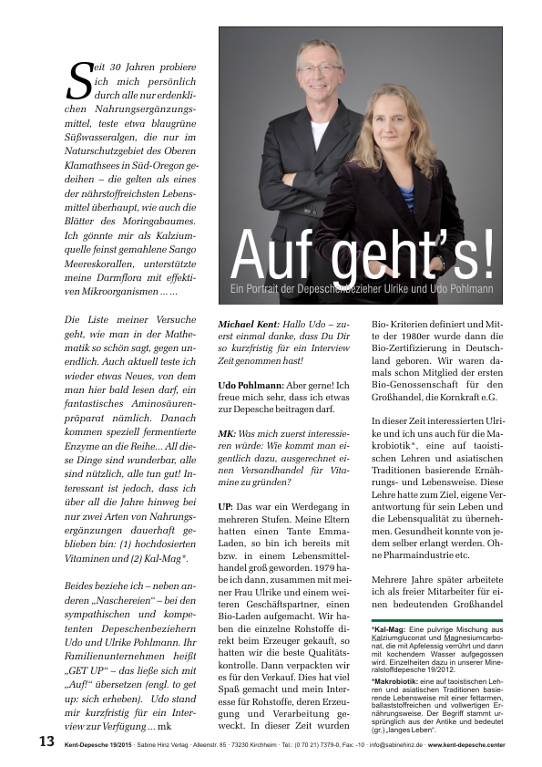 • „Auf geht's!“ Portrait der Depeschenbezieher Ulrike und Udo Pohlmann (Get Up! Vitamine)