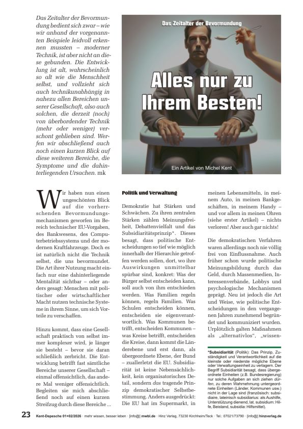 Die Artikel dieser Depesche gehen dieser Entwicklung nach: Wodurch entsteht diese unbemerkte Form der Lenkung? Wie wächst sie, wem nützt sie – und vor allem: Welche Handlungsspielräume bleiben dem Einzelnen?