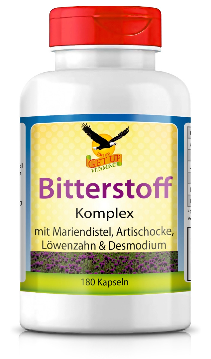 Get UP Bitterstoff Komplex mit Mariendistel, Artischocke, Löwehnzahn und Desmodium in veganen Cellulose Kapseln ist ein leicht einzunehmendes Präparat ohne weitere Hilfsstoffe oder andere Zusatzstoffe.