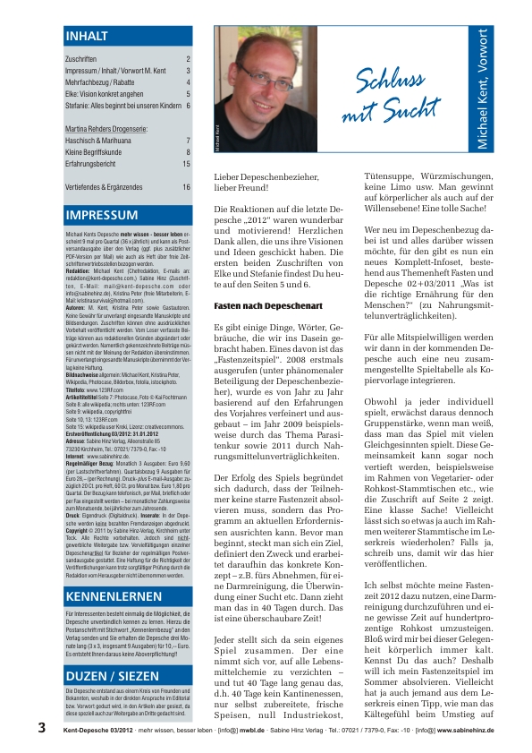»Wie immer in dieser Serie wollen wir auch heute nicht rügen, schwarzmalen und nicht mit Schockbildern abschrecken! Statt dessen möchten wir wertungsfreie Informationen bereitstellen, mit denen man etwas anfangen kann, die also jungen Leuten, Einsteigern, Betroffenen, Freunden und Verwandten ohne moralischen Zeigefinger helfen, eine für sie richtige Entscheidung zu treffen.«