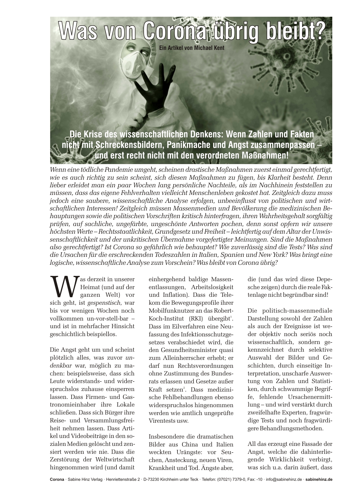 Was von Corona übrig bleibt! Wenn Zahlen & Fakten nicht mit Schreckensbildern, Panikmache und Angst zusammenpassen – und erst recht nicht mit den