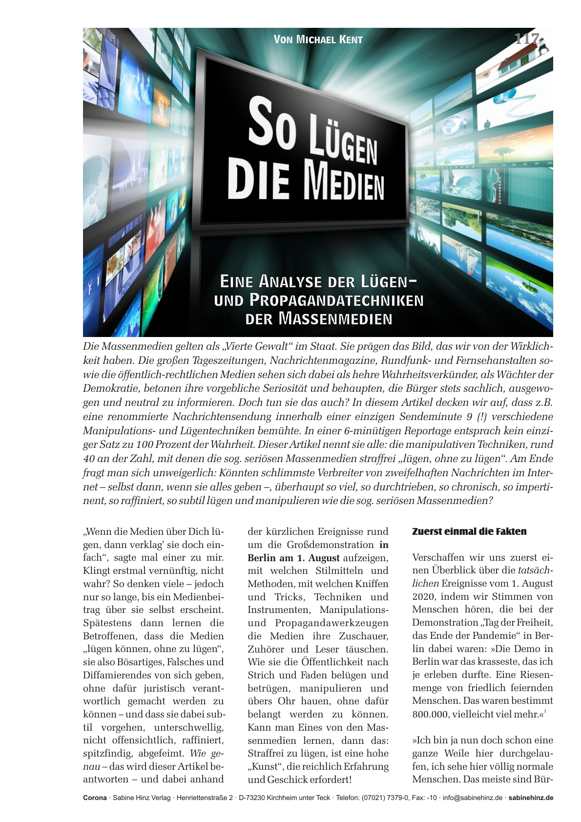 So lügen die Medien: Eine ausführliche Analyse aller Lügen- und Propagandatechniken der Massenmedien.