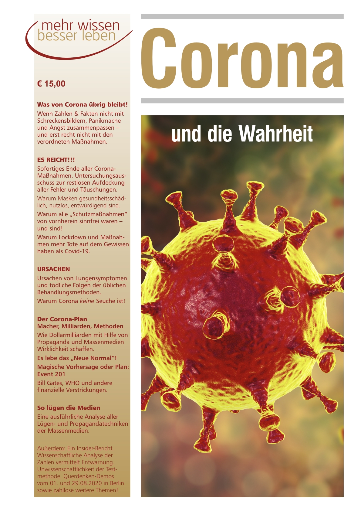 Dieses Themenheft präsentiert keine unbelegten Theorien, Mutmaßungen, Behauptungen, Verschwörungsideen, sondern nur nüchterne, kalte, nackte Fakten – belegt durch mehr als 250 solide Quellen. Was Sie mit diesen Fakten tun, bleibt Ihnen überlassen. In jedem Falle aber ist es besser, diese Fakten zu kennen als sie nicht zu kennen, vor allem, wenn man bedenkt, worum es hier letztendlich geht!
