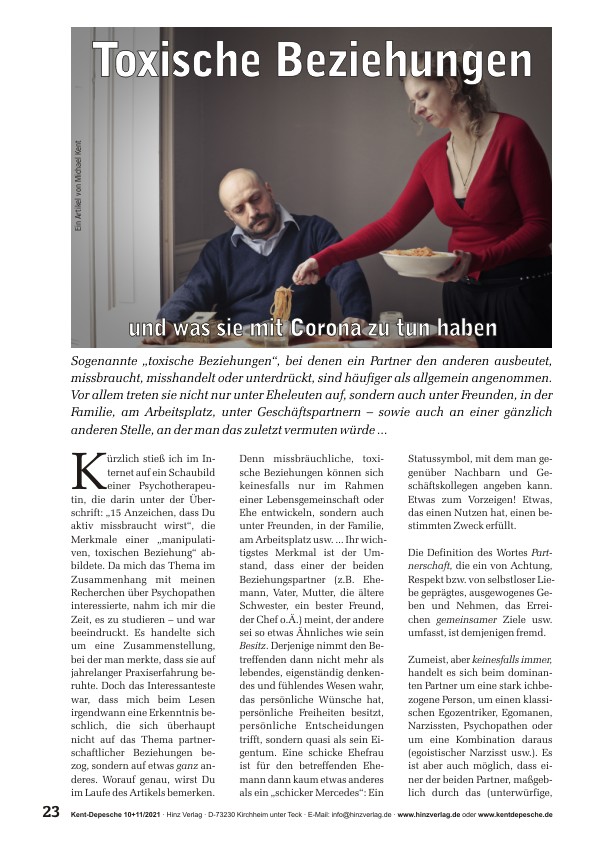 • Toxische Beziehungen – und was sie mit Corona zu tun haben.