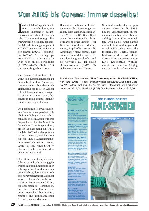 • Von AIDS bis Corona: immer dasselbe Spiel!