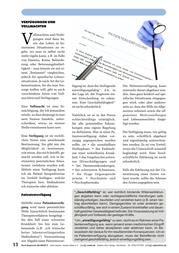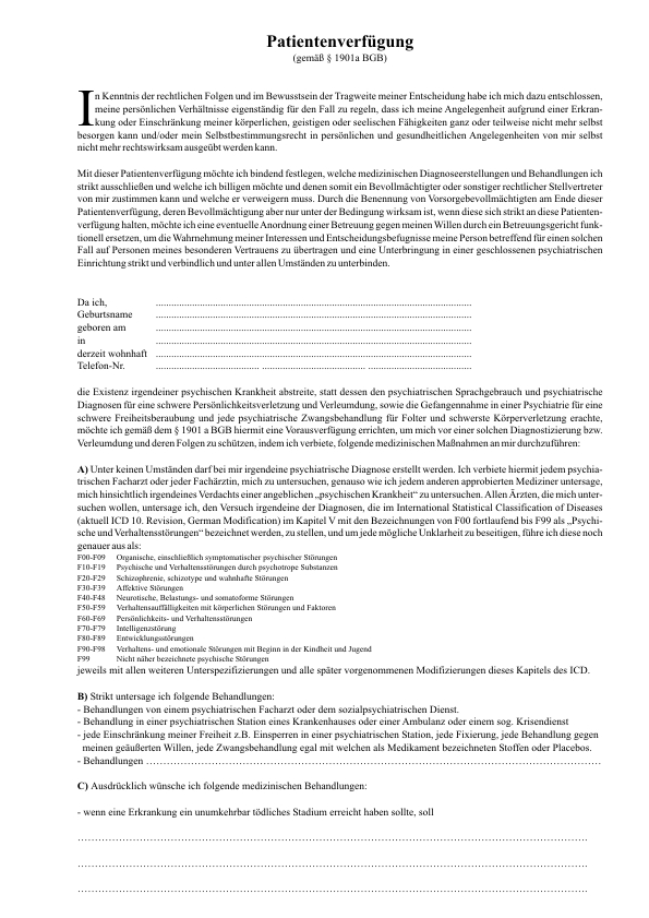 • Verfügungen (Patientenverfügung mit Mustertext)