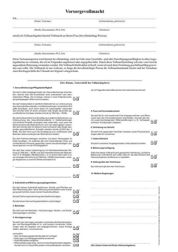 • Vollmachten (Vorsorgevollmacht mit Mustertext)