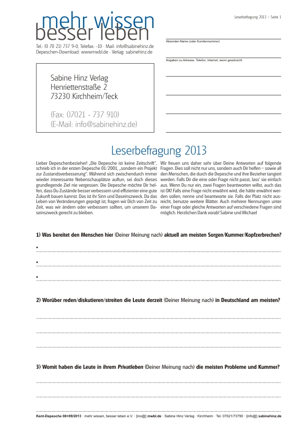 Doppeldepesche 08+09/2013, Heftnummern 462+463