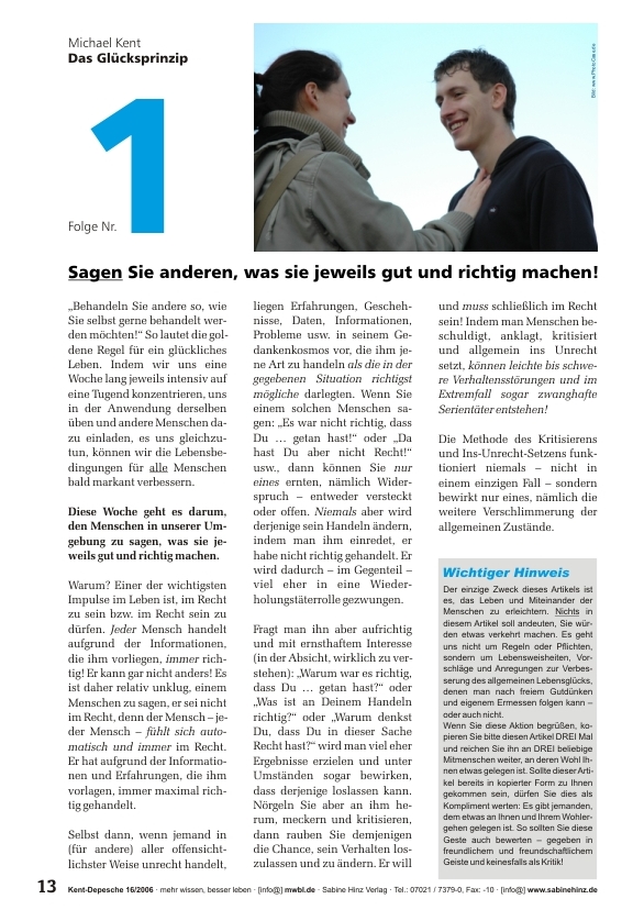 • Die erste Woche: Sagen Sie anderen, was Sie jeweils gut und richtig machen!