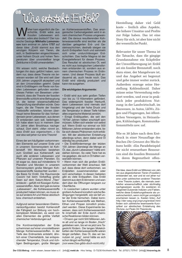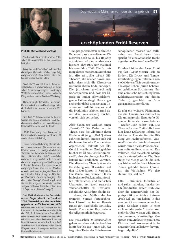 • Erdöl- und Energiekrise? Erdöl und Erdgas entstehen auf nicht-biotische Weise, nicht aus fossilen Organismen und sie entstehen auch heute laufend neu!