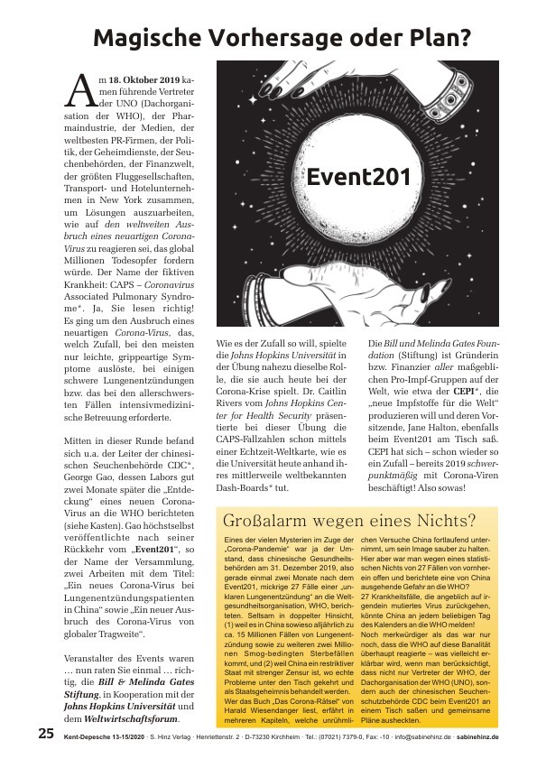 • Das “Lock Step”-Szenario der Rockefeller-Foundation u.a. magische Vorhersagen