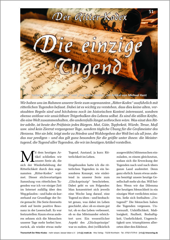 • Die Tugenden der Ritter als Wegweiser für das Heute