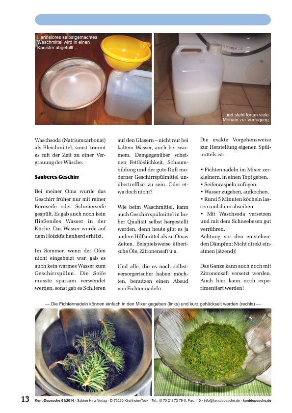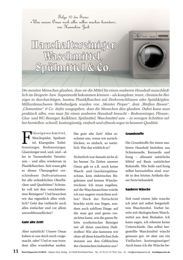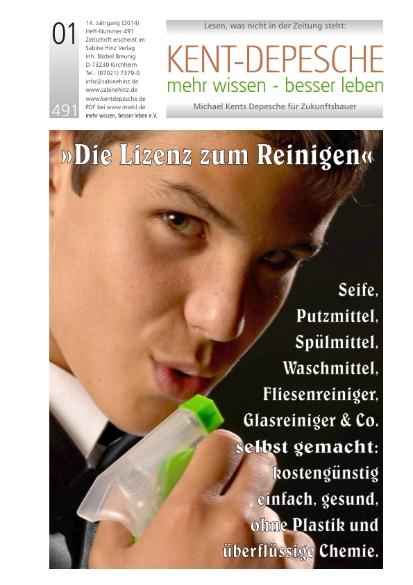 »Die meisten Menschen glauben, dass sie die Mittel für einen sauberen Haushalt ausschließlich im Drogerie- bzw. Supermarkt bekommen können – als teure, chemische Reiniger in bunten Plastikflaschen. Milliardenschwere Werbebudgets wurden von „Meister Proper“, dem „Weißen Riesen“, „Clementine“ & Co. dafür ausgegeben, dass die Menschen dies glauben. Dabei kann man praktisch alles, was man für einen sauberen Haushalt braucht – Bodenreiniger, Fliesen-, Glas- und WC-Reiniger, Kalklöser, Spülmittel, Waschmittel usw. – in wenigen Schritten selber herstellen: schnell, kostengünstig, einfach und oftmals sogar in besserer Qualität.«
