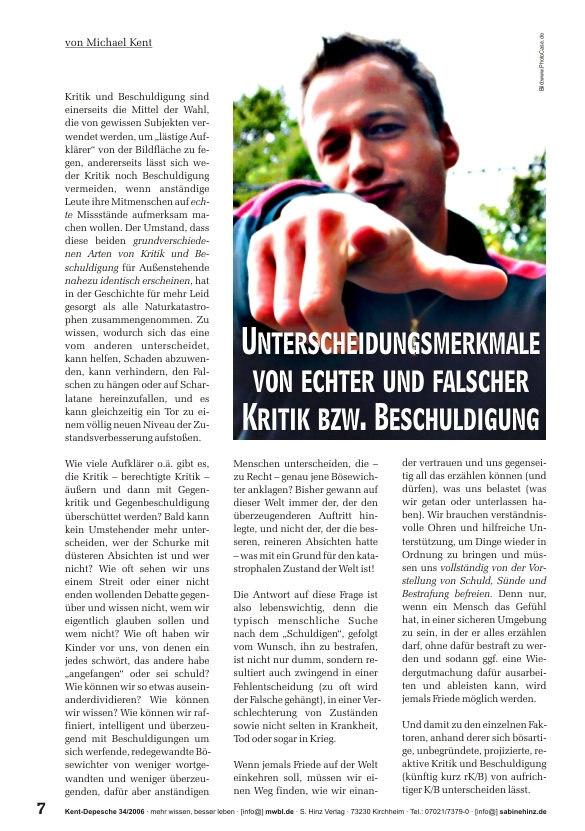 Andererseits lässt sich weder Kritik noch Beschuldigung vermeiden, wenn anständige Leute ihre Mitmenschen auf echte Missstände aufmerksam machen wollen.