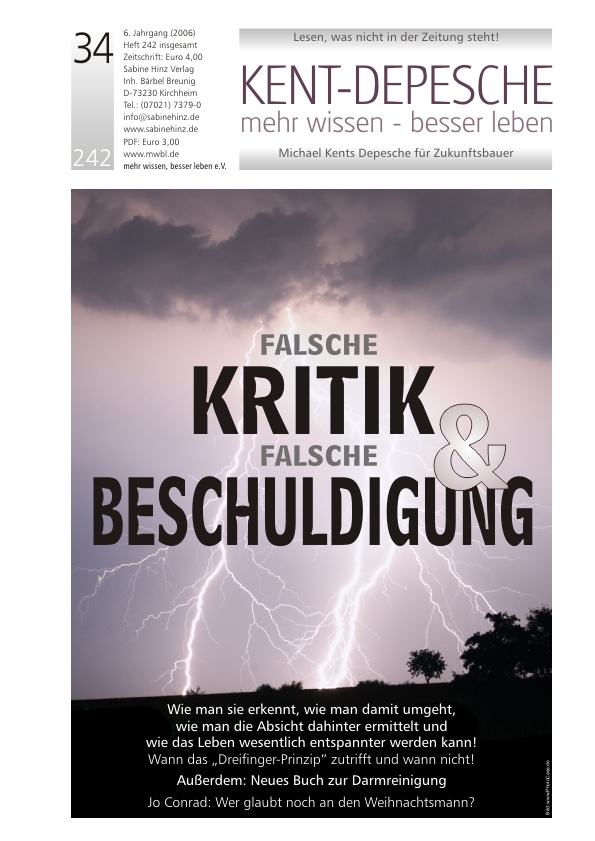 Die aller-, allermeiste Kritik, die wir bekommen, ist demgegenüber lediglich eine Projektion der Sünden des Kritikers auf den Kritisierten. Sie folgt dem Spiegel-Gesetz (wir bemängeln an anderen nur unsere eigenen Sünden) – und auf diese Kritik sollten wir unter keinen Umständen hören, wenn wir überleben bzw. fröhlich bleiben wollen.