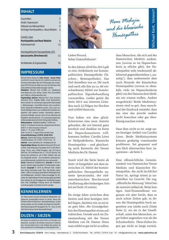 • Therapeutische Ergänzung der Neuen Medizin durch klass. Homöopathie.