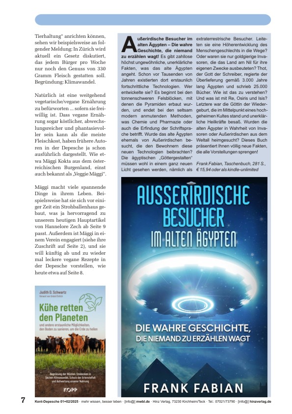 • Buchneuerscheinungen, z.B. „Außerirdische Besucher im alten Ägypten“