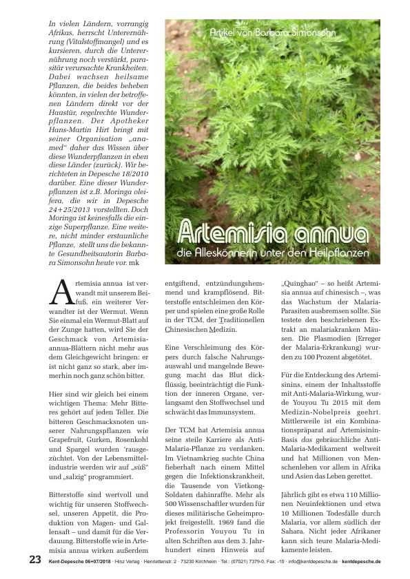 • Barbara Simonsohn: Artemisia annua – die Alleskönnerin unter den Heilpflanzen