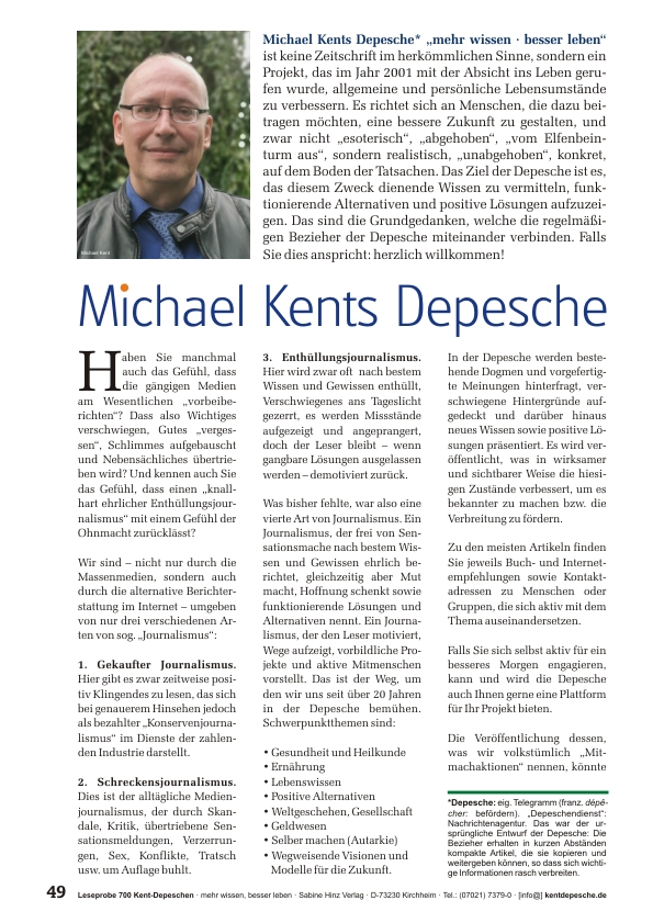 Jubiläumsheft anlässlich der 700. Kent-Depesche