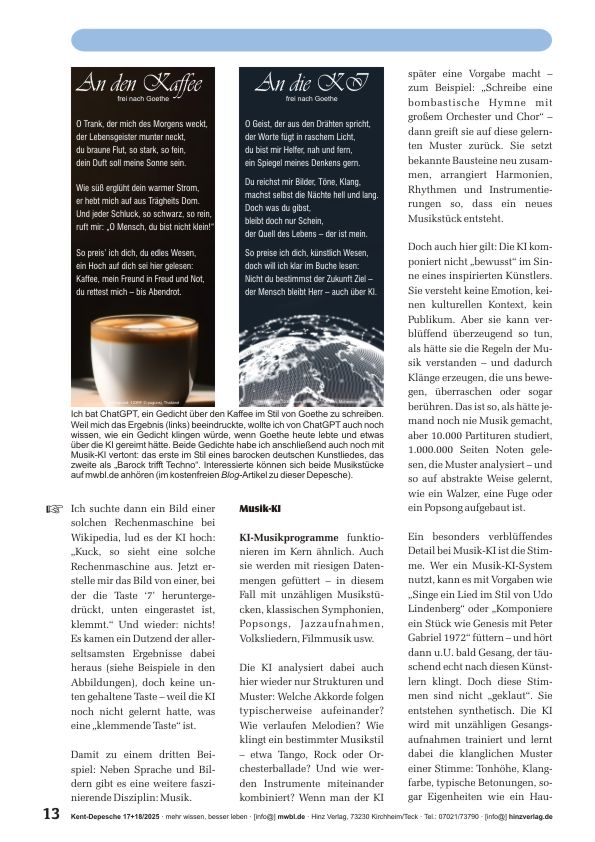 Die einen wollen von der Diskussion um KI nichts wissen, nutzen sie, um sich die Arbeit zu erleichtern. Die anderen sehen darin den drohenden Weltuntergang. Und viele schwanken dazwischen – voller Argwohn, Skepsis oder Sorge. Alle Sichtweisen haben ihre Berechtigung – und diesem Raster folgt auch die Depesche: Sie beleuchtet sowohl die Praxisanwendungen, aber auch die immensen Risiken, Gefahren und berechtigten Befürchtungen. Am Ende kommt mein Artikel zu einem Fazit, das doch manchen überraschen dürfte.
