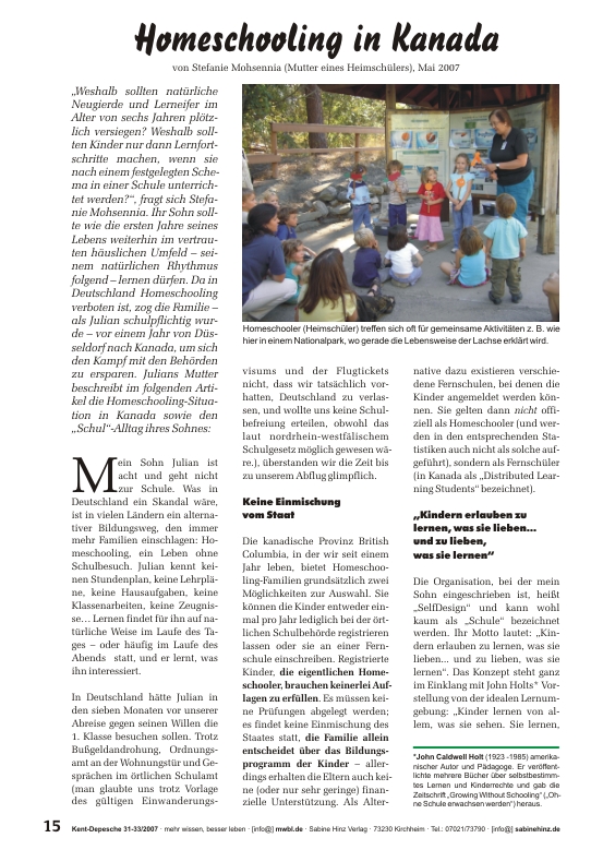 • Homeschooling in Kanada