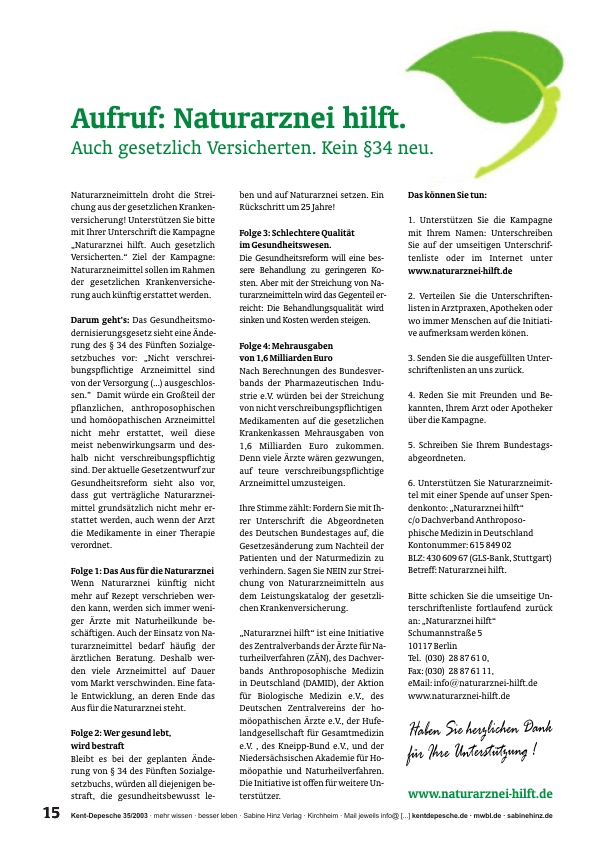 • Unterschriftenliste für Erhalt von Naturarznei!