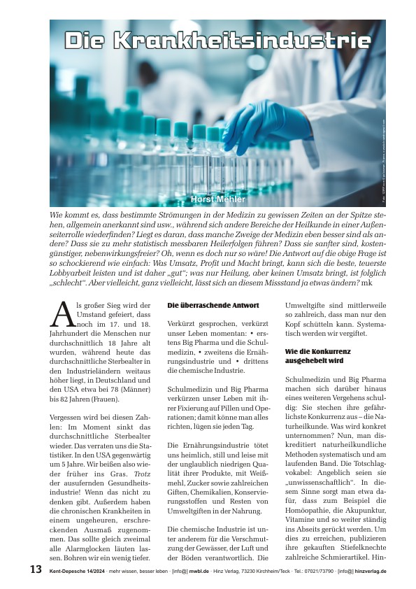 Wie kommt es, dass gewisse Strömungen der Medizin zu gewissen Zeiten an der Spitze stehen, allgemein anerkannt sind usw., während sich andere Bereiche der Heilkunde in einer Außenseiterrolle wiederfinden? Liegt es daran, dass manche Zweige der Medizin eben besser sind als andere? Dass sie zu mehr statistisch messbaren Heilerfolgen führen? Dass sie sanfter sind, kostengünstiger, nebenwirkungsfreier? Oh, wenn es doch nur so wäre! Die Antwort auf die Frage ist so schockierend wie einfach: Was Umsatz, Profit und Macht bringt, kann sich die beste, teuerste Lobbyarbeit leisten und ist daher „gut“; was nur Heilung, aber keinen Umsatz bringt, ist folglich „schlecht“. Aber vielleicht, ganz vielleicht, lässt sich an diesem Missstand ja etwas ändern?«