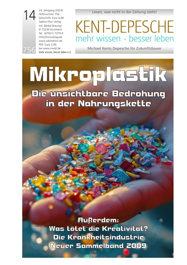 »Recycling von Plastik ist ein Mythos. Irgendwann landet fast alles Plastik, das je erzeugt wurde, in zerkleinerter Form in der Luft, in Flüssen, Seen, auf Äckern und in den Weltmeeren – und gelangt letztlich in den menschlichen Nahrungskreislauf. Rund fünf Gramm Mikroplastik nimmt jeder Erdenbürger im Durchschnitt wöchentlich bereits zu sich – über die Atmung, über Essen und Trinken beziehungsweise über direkten Hautkontakt. Dr. Harald Wiesendanger beschreibt im folgenden Artikel, was die Plastikwinzlinge alsdann im menschlichen Körper anrichten. Die Palette reicht von Störungen im Gehirn bis hin zur Schädigung von Föten und Unfruchtbarkeit.«