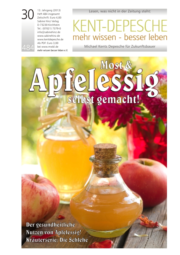 Liter zu wenigen Cent. Das ist natürlich ein Vorteil, andererseits aber auch ein Nachteil. Denn dadurch gibt der Mensch seine Unabhängigkeit und Selbstständigkeit an der Supermarktkasse ab – und darüber hinaus auch seine Kreativität. Hannelore Zech beschreibt in ihrer heutigen Folge der Serie „Was unsere Omas noch selber machen konnten“, wie man selbst Apfelmost bzw. Apfelessig herstellen kann – mit Anwendungsbeispielen und gesunden Rezepten. Wer das einmal gelernt hat, kann experimentieren und dann verschiedenste Dinge erzeugen, die man nie im Supermarkt findet. Das ist spannend. Ein Erlebnis. Ein neues Stück Unabhängigkeit. Wer es zum ersten Mal probiert, mag dabei vielleicht Enttäuschungen