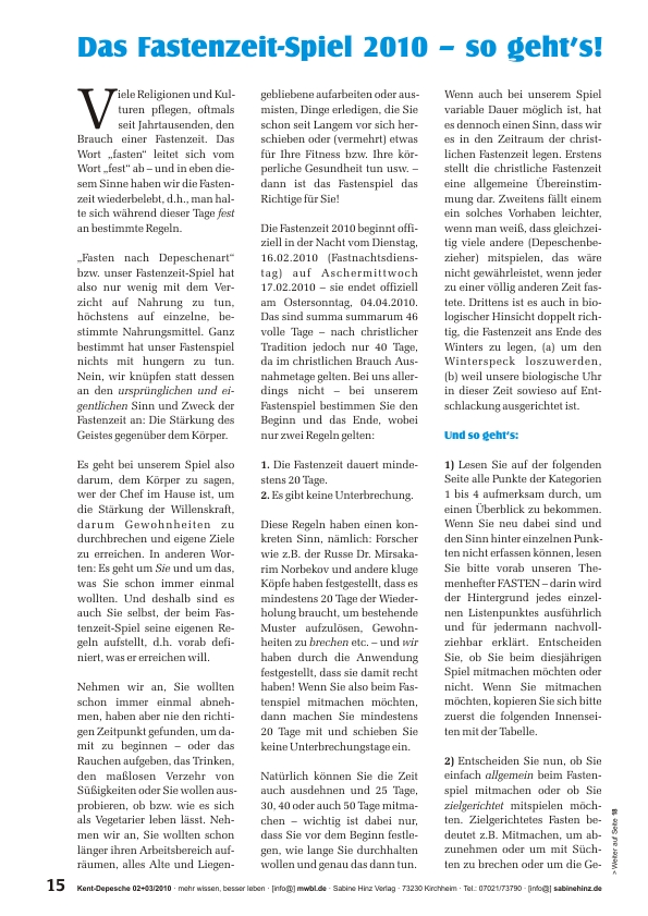 • Das Fastenzeit-Spiel 2010 – so geht’s!