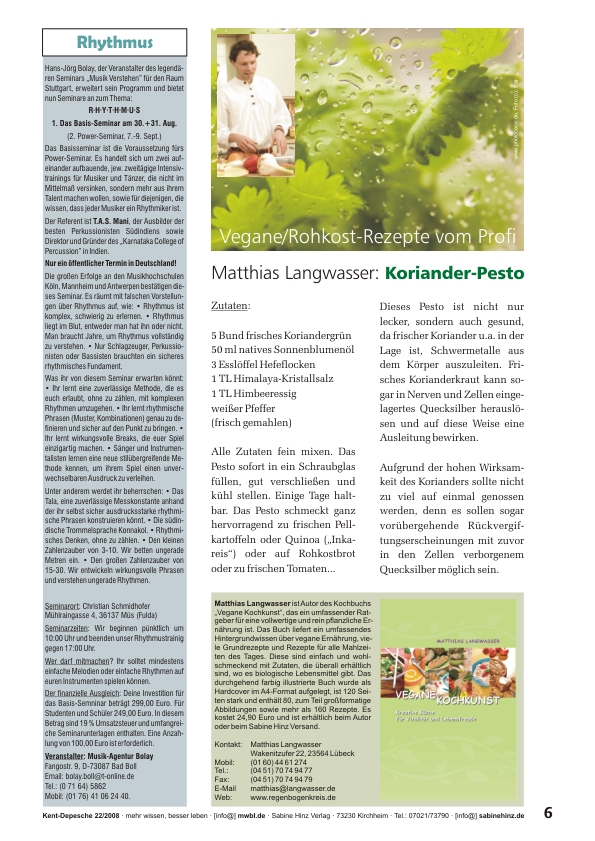 Auf Seite 6 präsentiert Dir der Profi für vegane Küche, Matthias Langwasser, sein Rezept für überaus leckeres Koriander-Pesto.