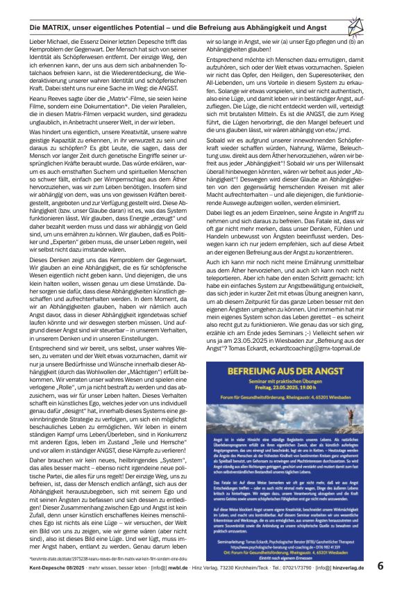 • Die Matrix, unser Potential, und die Befreiung aus Abhängigkeit und Angst