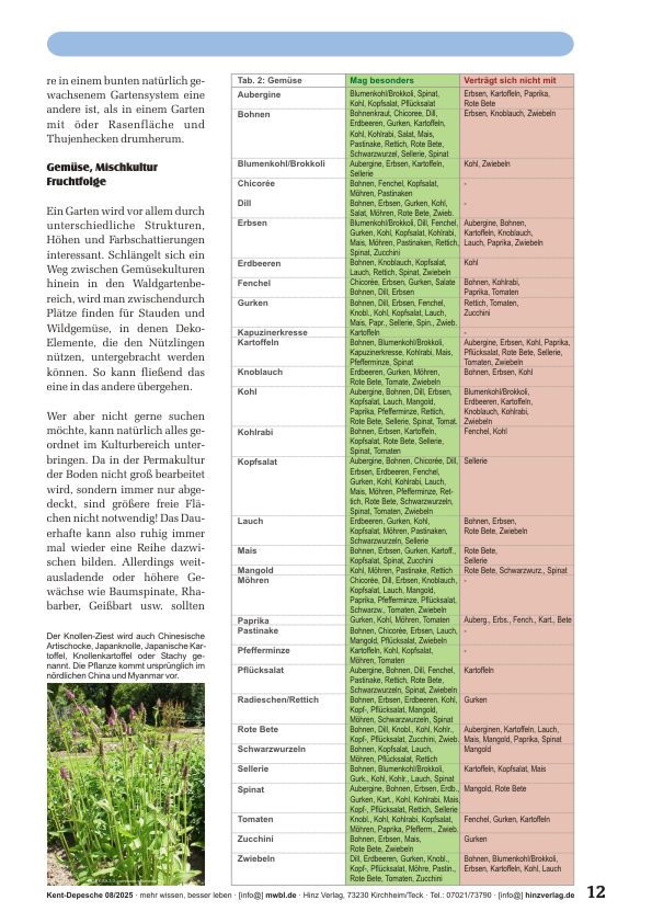 • Welche Pflanzen vertragen sich nicht, stören einander?