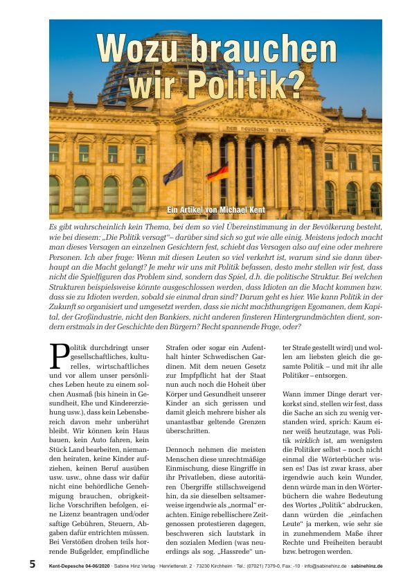 Dreifachdepesche 04-06/2020: Was stimmt nicht mit der Politik?