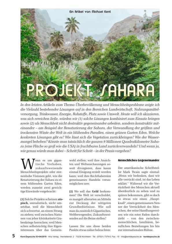 Welche konkreten Lösungen gibt es? Wie lässt sich die Vegetation zurückbringen? Wie der Wassermangel beheben? Könnte man tatsächlich die ganzen 9 Millionen Quadratkilometer Sahara (eine Fläche so groß wie die USA) in fruchtbares Land zurückverwandeln? Und wenn ja, wie geht man Schritt für Schritt in der Praxis vor?