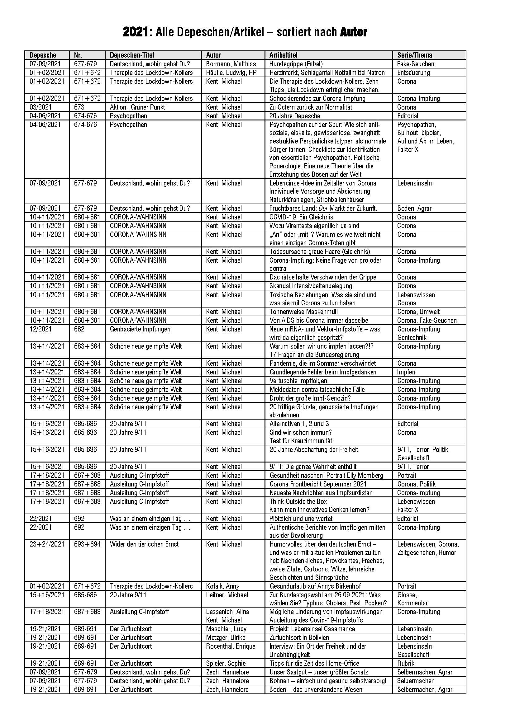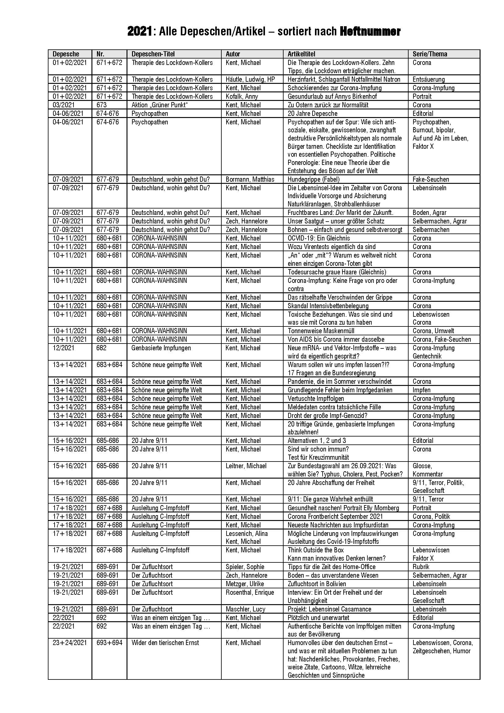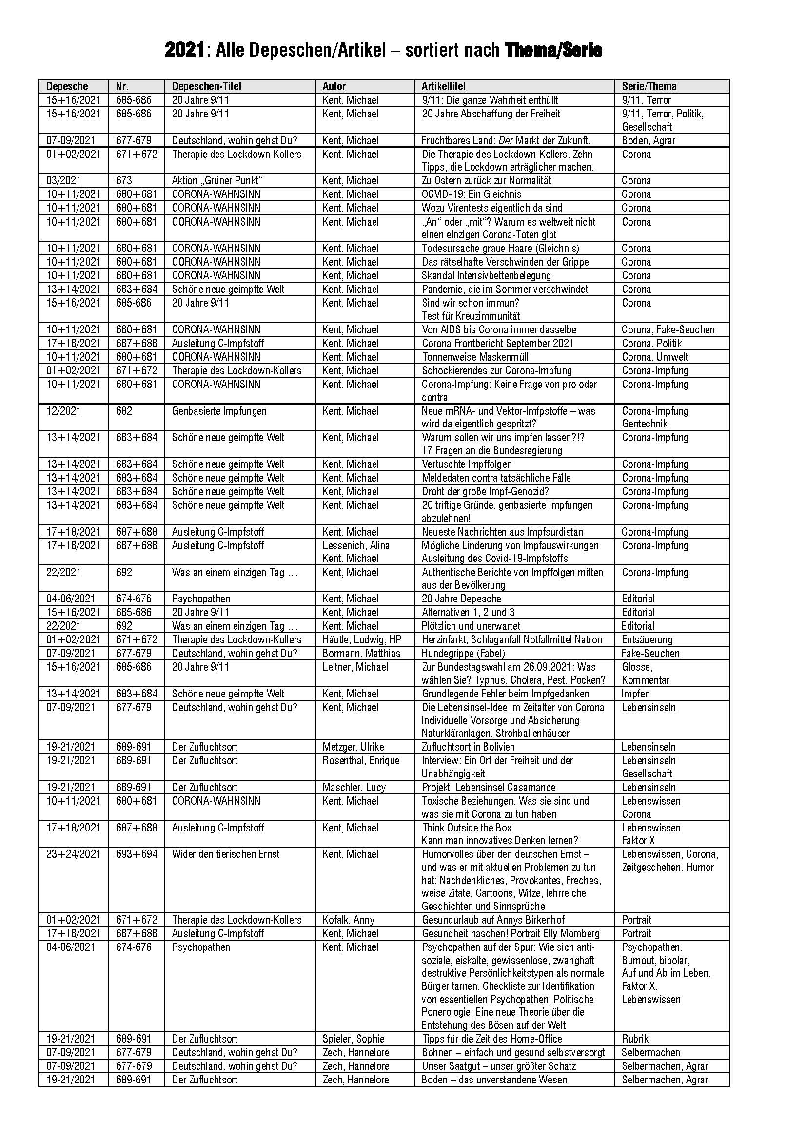 Alle 24 Depeschen des Jahres 2021