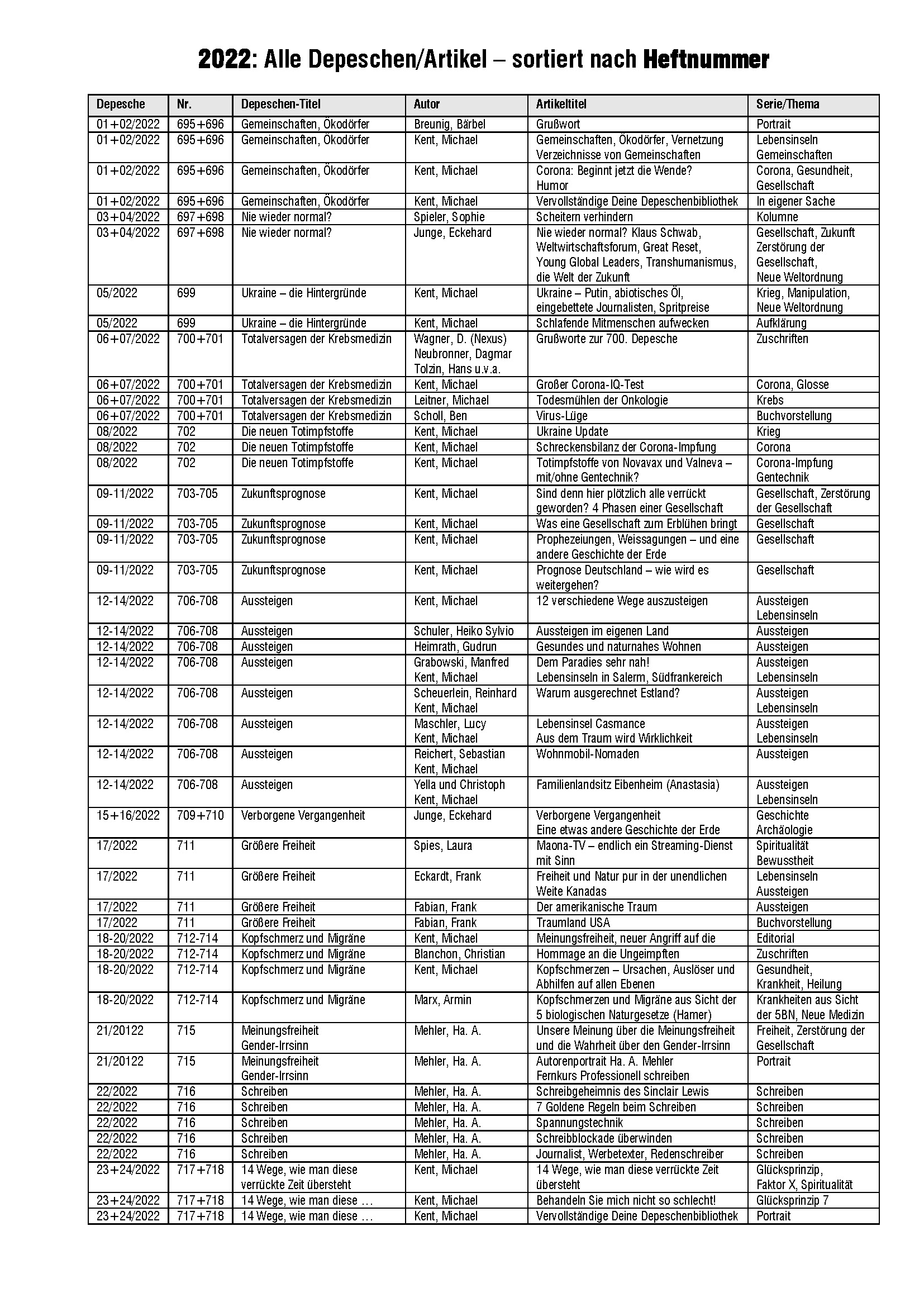 Ausführliche Inhaltsbeschreibungen der Einzelhefte finden Sie hier: