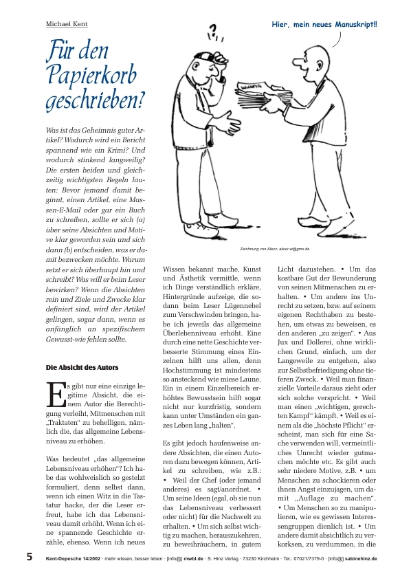 Was ist das Geheimnis guter Artikel? Wodurch wird ein Bericht spannend wie ein Krimi? Und wodurch stinkend langweilig? Was sind die ersten beiden und gleichzeitig wichtigsten Regeln?