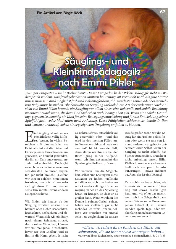 • Säuglings- und Kleinkinder-Pädagogik nach Emmi Pikler